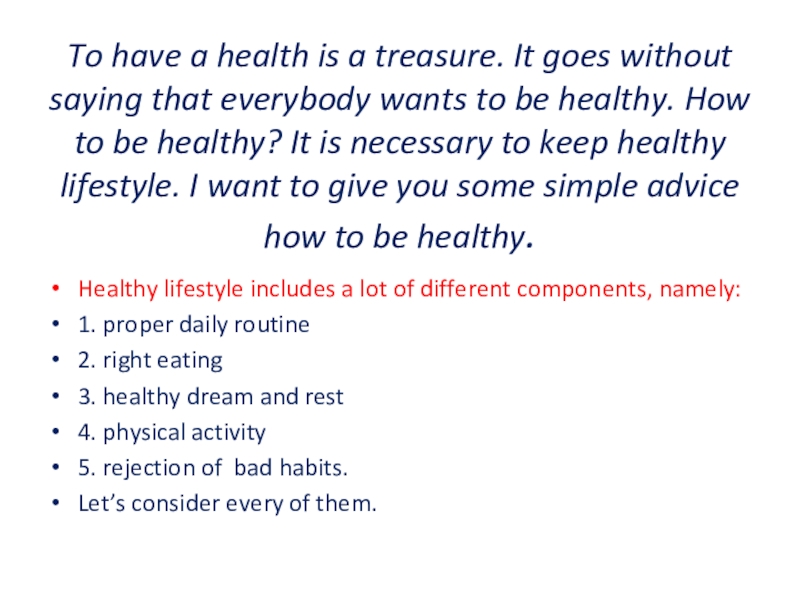 Healthy lifestyle includes a lot of different components, namely: