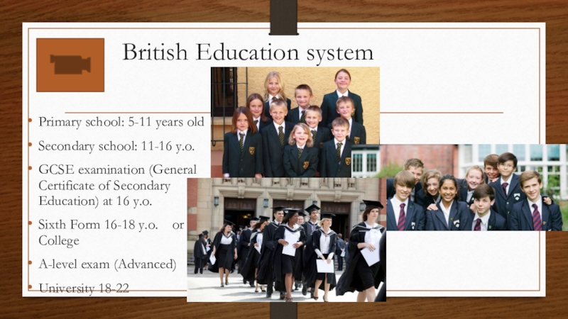 British Education systemPrimary school: 5-11 years oldSecondary school: 11-16 y.o.GCSE examination (General Certificate of Secondary Education) at