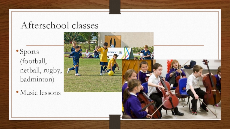 Afterschool classesSports (football, netball, rugby, badminton)Music lessons