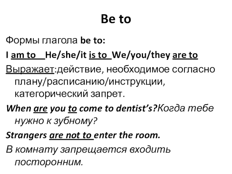 Формы глагола be to: