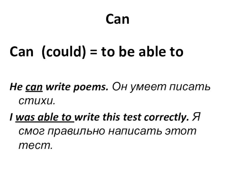 CanCan (could) = to be able toHe can write poems. Он умеет писать стихи.I was able to