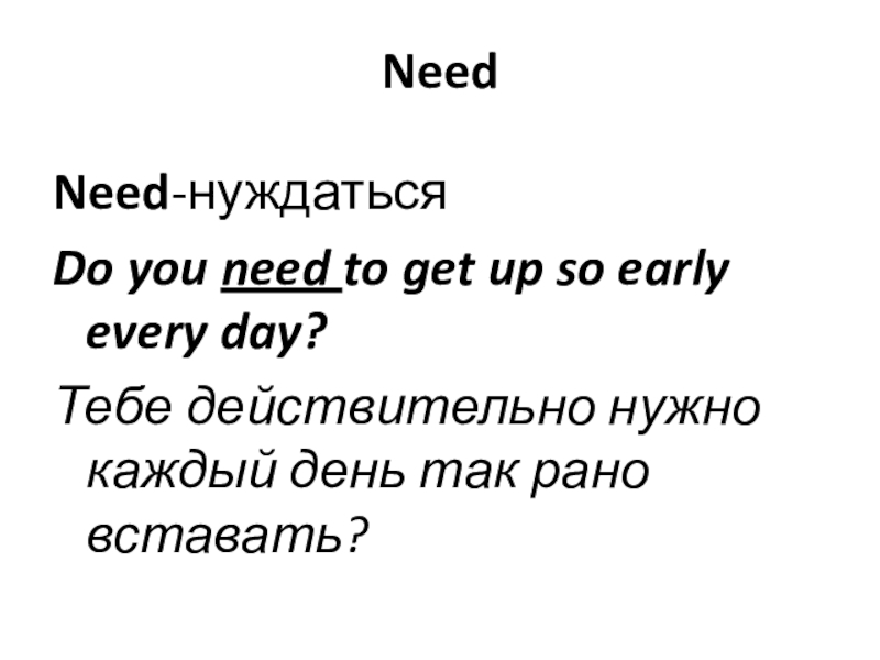 Need Need-нуждатьсяDo you need to get up so early every day?Тебе действительно нужно каждый день так рано