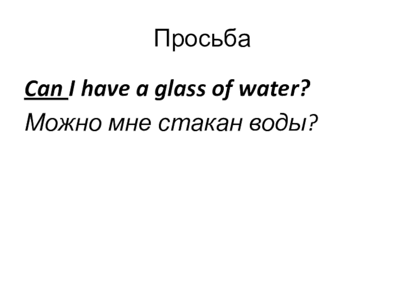 Просьба Can I have a glass of water?Можно мне стакан воды?