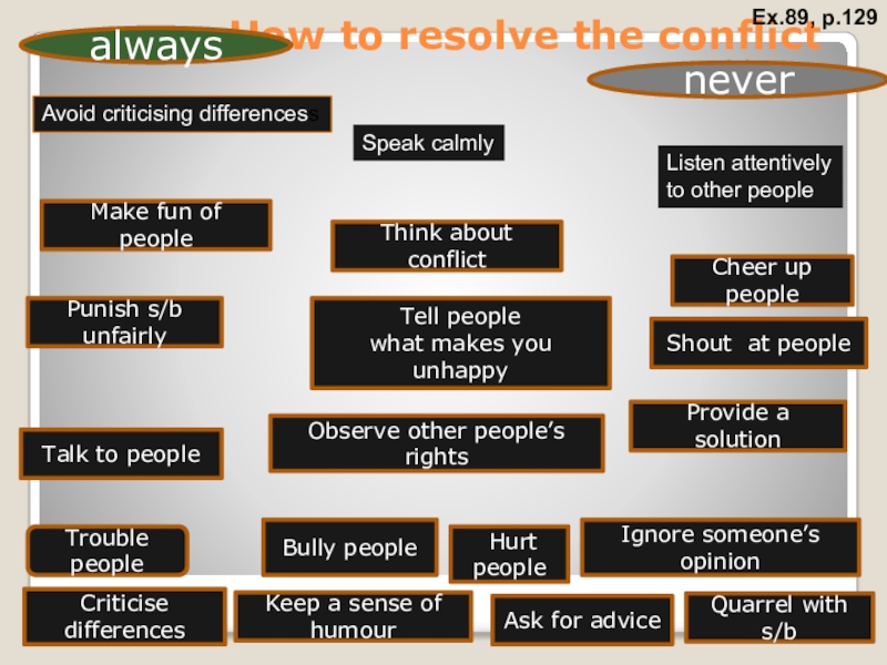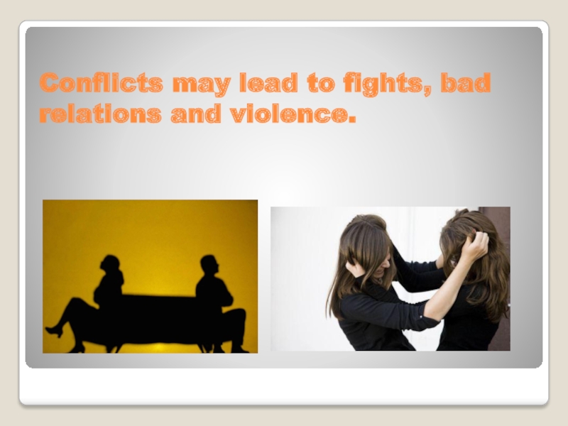 Слайд 16Conflicts may lead to fights, bad relations and violence.