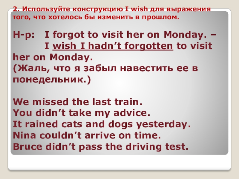 Слайд 722. Используйте конструкцию I wish для выражения того, что хотелось бы изменить в