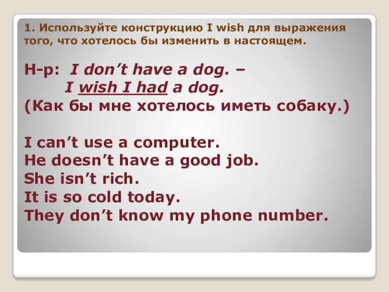 Слайд 711. Используйте конструкцию I wish для выражения того, что хотелось бы изменить в