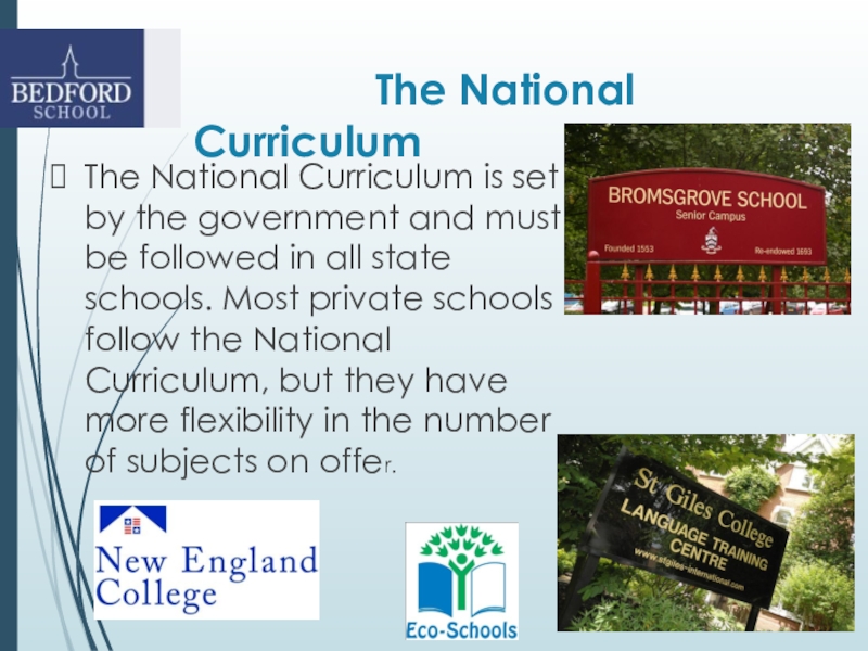 The National Curriculum is set by the government and must be followed in all state schools. Most private schools follow the National Curriculum, but they have more flexibility in the number of subjects on offer.