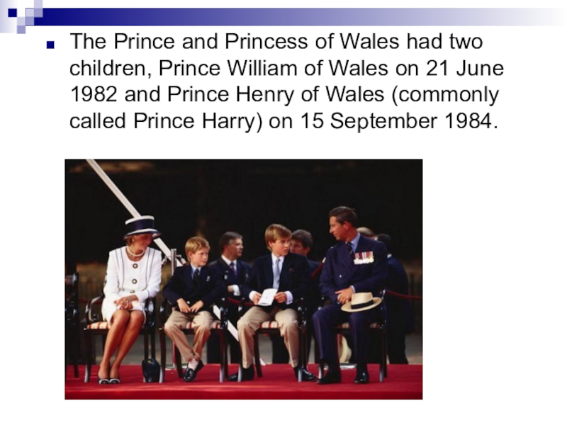 Слайд 7The Prince and Princess of Wales had two children, Prince William