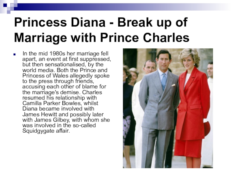 Слайд 8Princess Diana - Break up of Marriage with Prince Charles