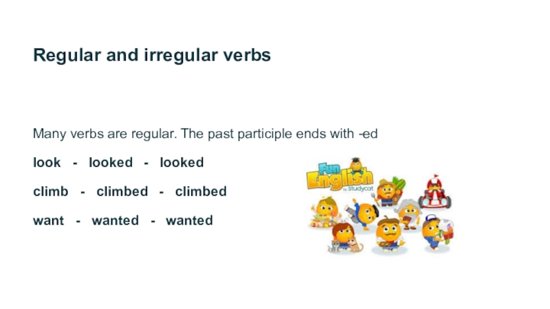 Regular and irregular verbsMany verbs are regular. The past participle ends with -edlook  -  looked