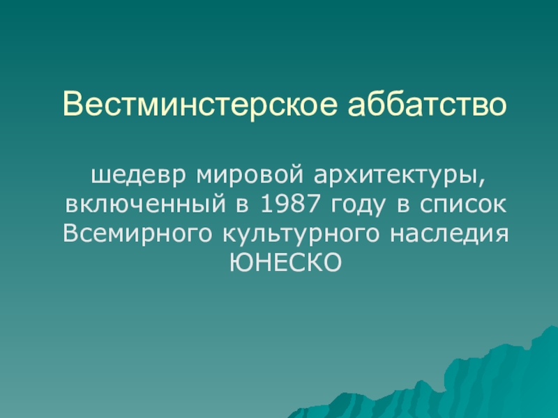 Вестминстерское аббатство  шедевр мировой архитектуры, включенный в 1987 году в список Всемирного культурного наследия ЮНЕСКО