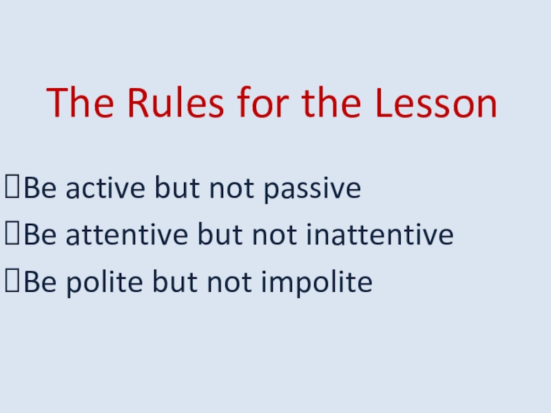 Слайд 3The Rules for the Lesson
