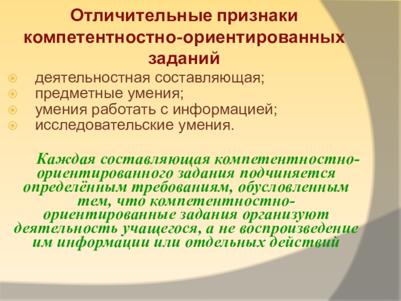 Отличительные признаки компетентностно-ориентированных заданий