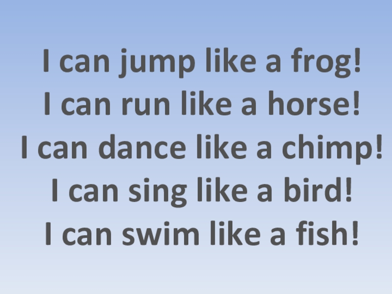 I can jump like a frog!I can run like a horse!I can dance like a chimp!I can