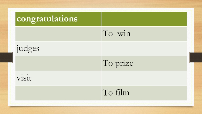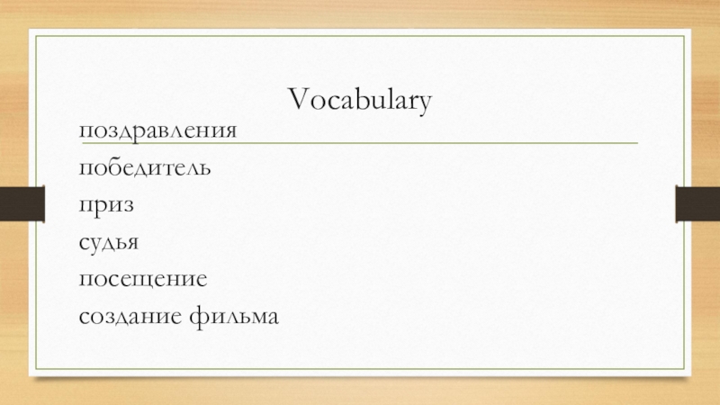 Vocabulary поздравленияпобедительпризсудьяпосещениесоздание фильма