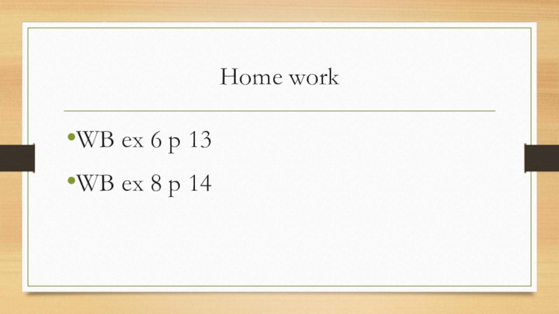 Home work WB ex 6 p 13WB ex 8 p 14