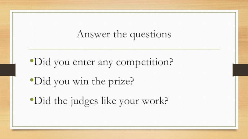 Answer the questionsDid you enter any competition?Did you win the prize?Did the judges like your work?