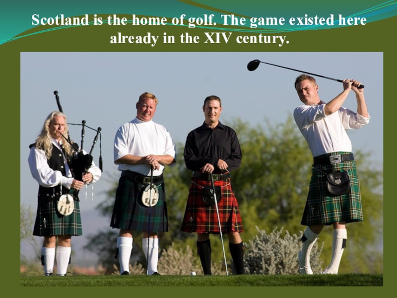 Scotland is the home of golf. The game existed here already in the XIV century.