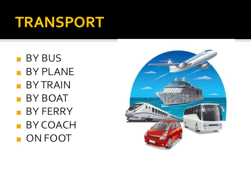 TRANSPORTBY BUSBY PLANEBY TRAINBY BOATBY FERRYBY COACHON FOOT