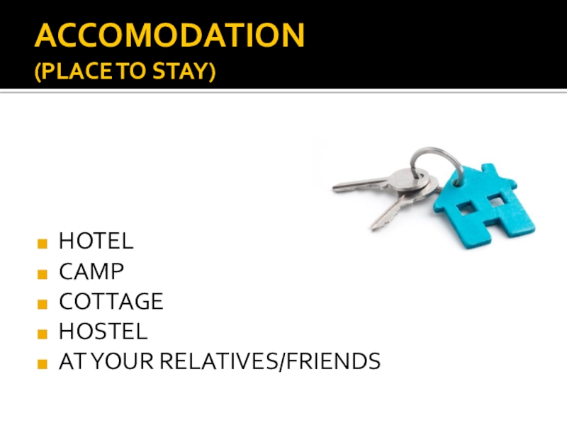 Слайд 4ACCOMODATION (PLACE TO STAY)