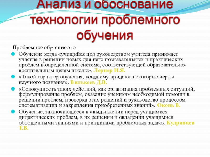 Слайд 2Анализ и обоснование технологии проблемного обучения