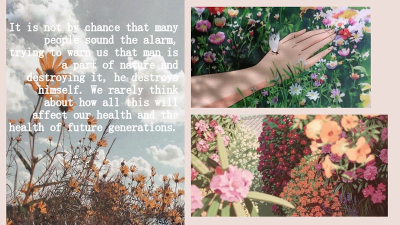 trying to warn us that man is a part of nature and destroying it, he destroys himself. We rarely think about how all this will affect our health and the health of future generations.