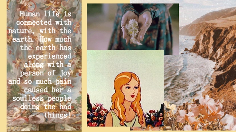 Human life is connected with nature, with the earth. How much the earth has experienced along with a person of joy and so much pain caused her a soulless people doing the bad things!