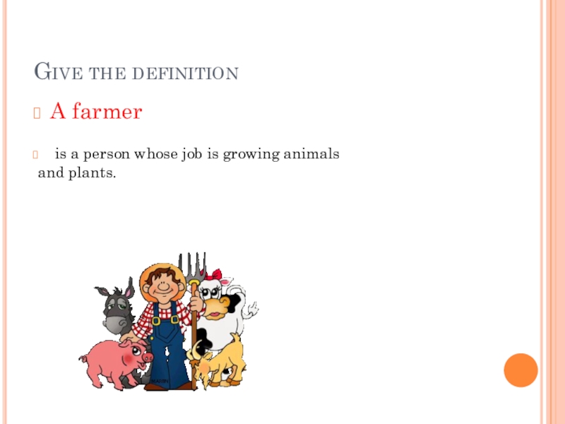 Give the definitionA farmer is a person whose job is growing animals and plants.