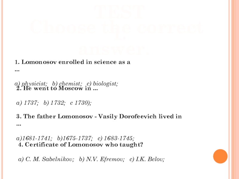 3. The father Lomonosov - Vasily Dorofeevich lived in ...