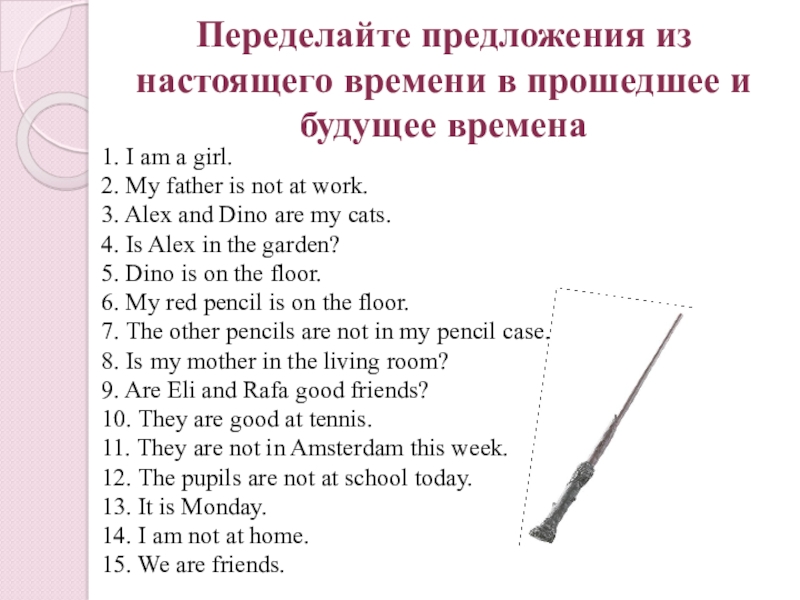 Переделайте предложения из настоящего времени в прошедшее и будущее времена