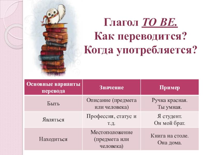 Поэтому если Вы переводите русское предложение, в котором отсутствует сказуемое, в английском предложении нужно употребить глагол to be (в соответствующей форме)