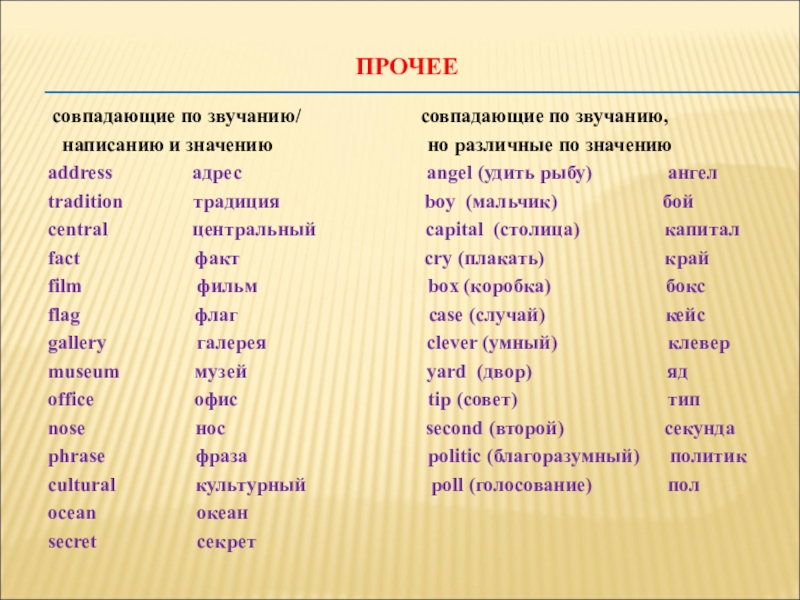 написанию и/или произношению, часто с общим происхождением, но различающихся по значению.