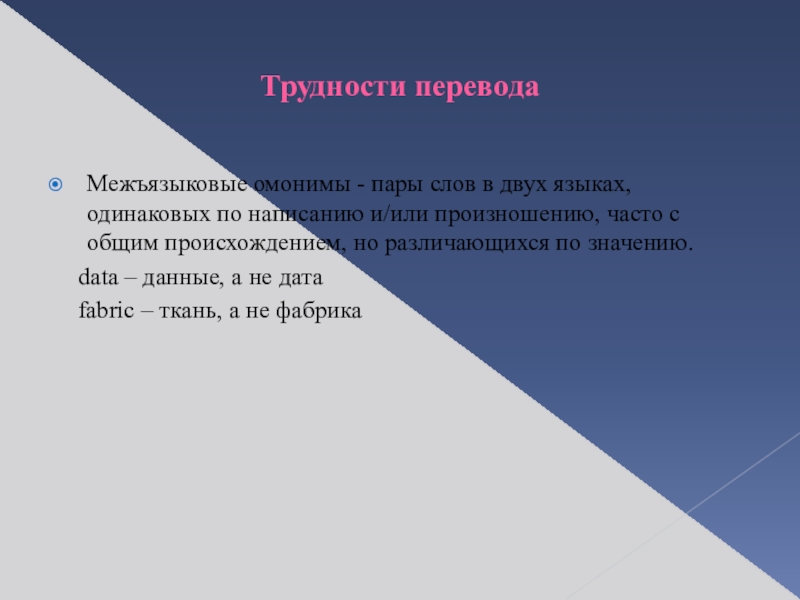Межъязыковые омонимы - пары слов в двух языках, одинаковых по