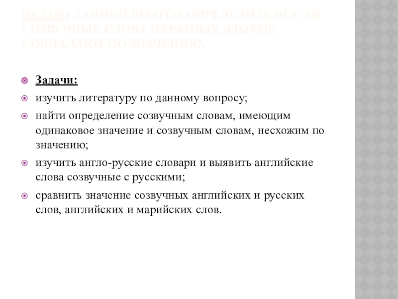 ЦЕЛЬЮ ДАННОЙ РАБОТЫ ОПРЕДЕЛИТЬ ВСЕ ЛИ СОЗВУЧНЫЕ СЛОВА ИЗ РАЗНЫХ ЯЗЫКОВ
