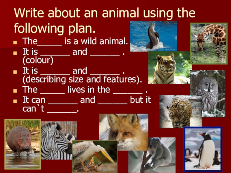 Write about an animal using the following plan. The_____ is a wild animal.It is ______ and ______