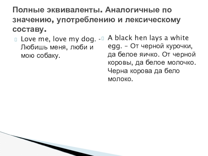Полные эквиваленты. Аналогичные по значению, употреблению и лексическому составу.