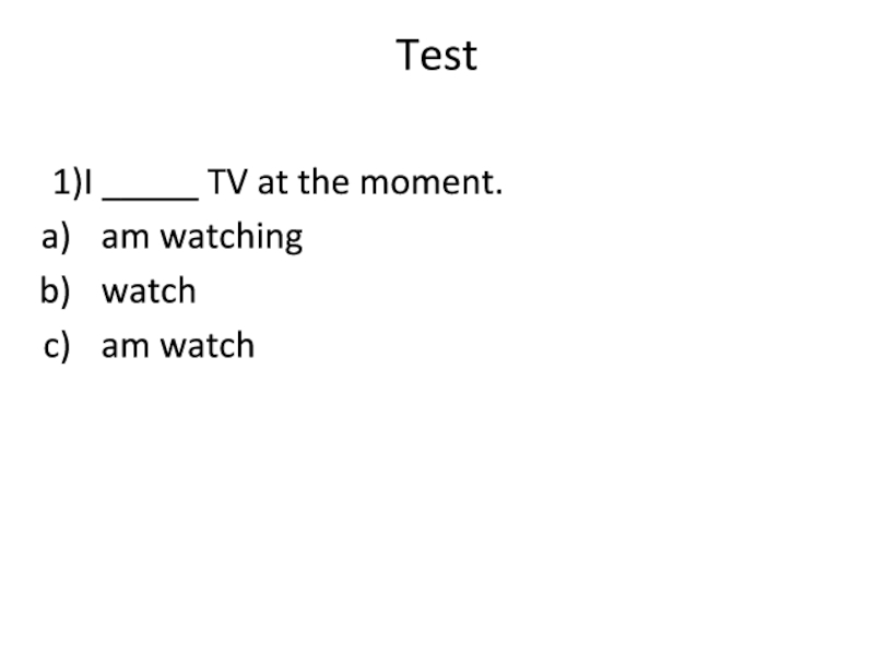 Test 1)I _____ TV at the moment.am watchingwatcham watch
