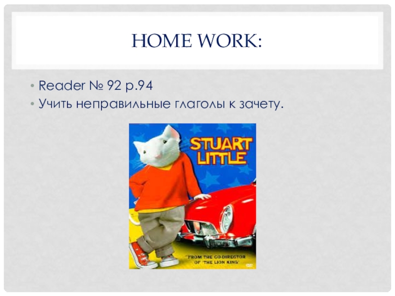 Home work:Reader № 92 p.94Учить неправильные глаголы к зачету.
