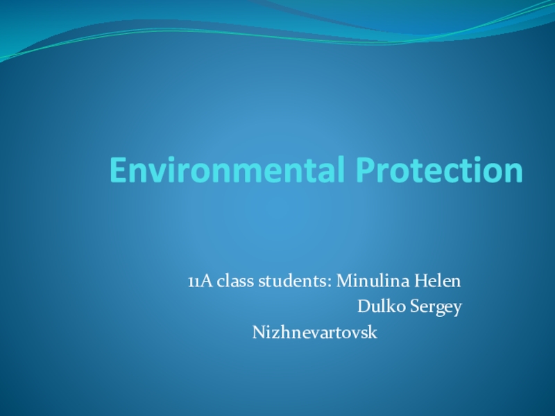 Environmental Protection  11A class students: Minulina Helen Dulko Sergey Nizhnevartovsk