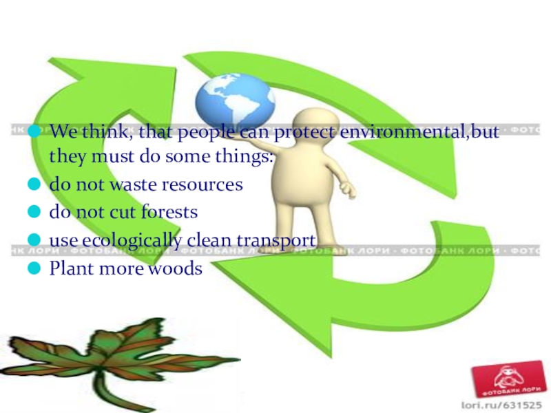 We think, that people can protect environmental,but they must do some things:do not waste resourсesdo not cut