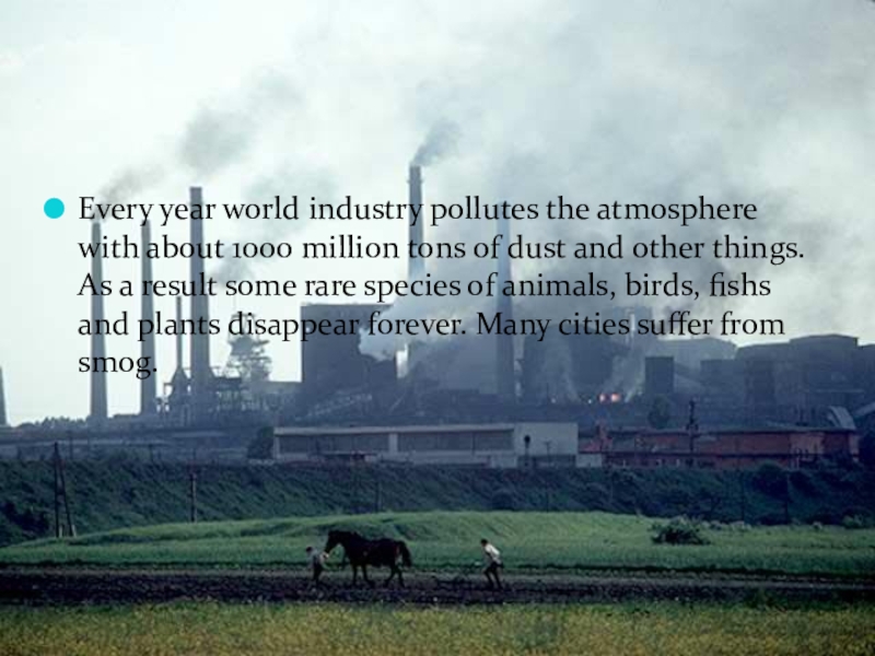 Слайд 3Every year world industry pollutes the atmosphere with about 1000 million