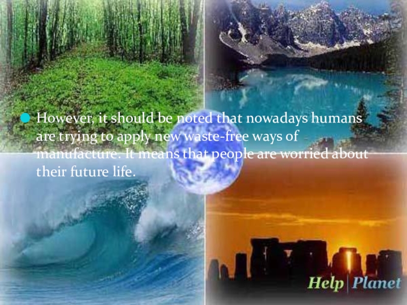 apply new waste-free ways of manufacture. It means that people are worried about their future life.