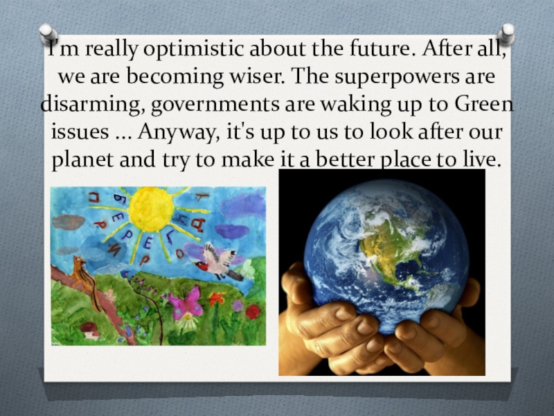 Слайд 9I'm really optimistic about the future. After all, we are becoming