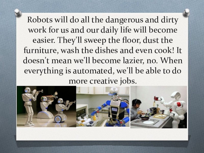 Слайд 3Robots will do all the dangerous and dirty work for us