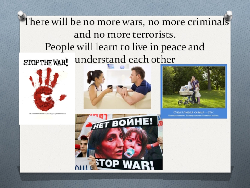 There will be no more wars, no more criminals and no more terrorists. People will learn to