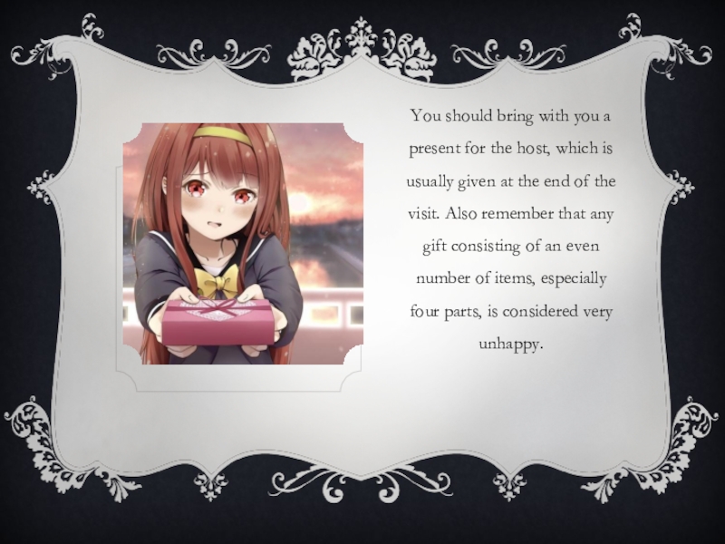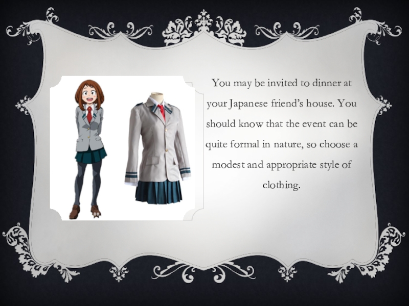 You may be invited to dinner at your Japanese friend’s house. You should know that the event can be quite formal in nature, so choose a modest and appropriate style of clothing.