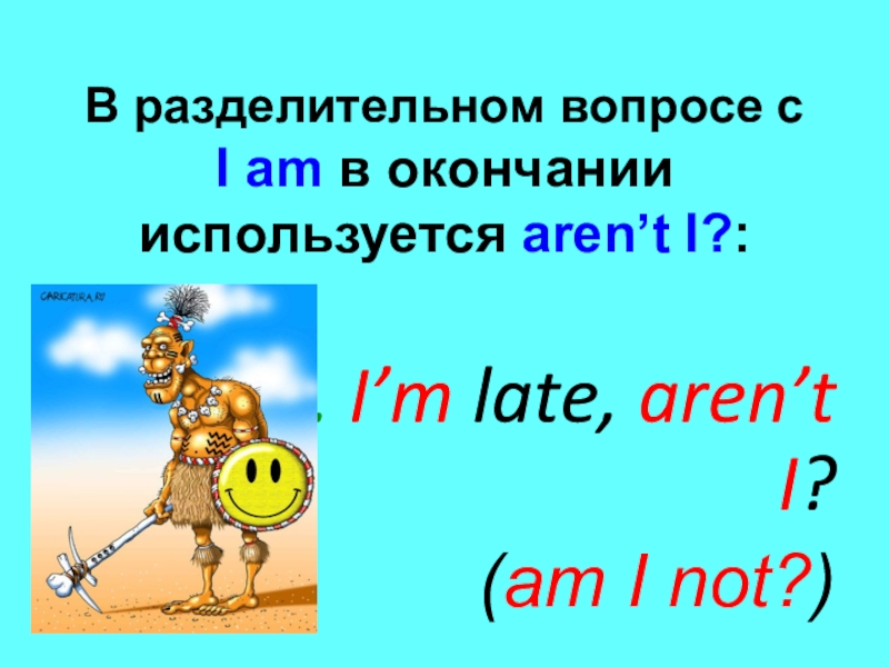 Слайд 14В разделительном вопросе с I am в окончании используется aren’t I?: