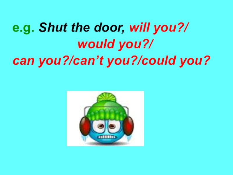 Слайд 21e.g. Shut the door, will you?/