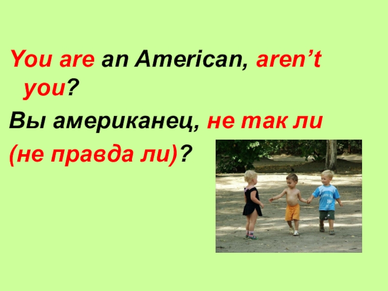 You are an American, aren’t you?Вы американец, не так ли (не правда ли)?