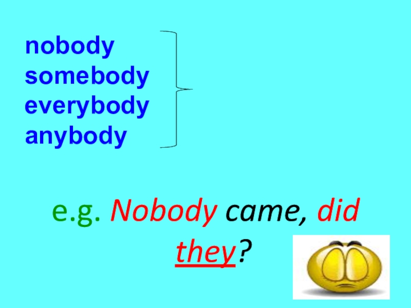 nobody somebody everybody anybodye.g. Nobody came, did they?they